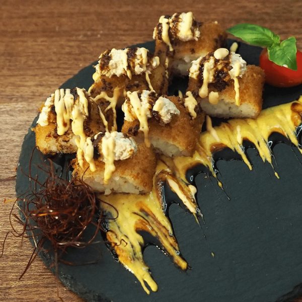 Un rouleau audacieux, frit à la perfection, renfermant un délicieux thon cuisiné, habillé de notre sauce Teriyaki et d’une piquante sauce maison.